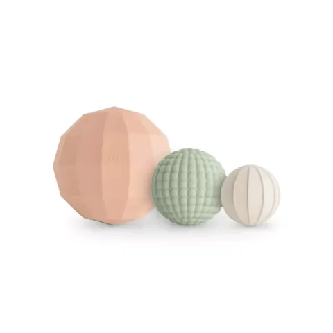 De Mushie Sensory Ballenset Blush helpt je baby te ontdekken met verschillende texturen en kleuren. Deze ballen zijn perfect om de zintuigen van je kleintje te stimuleren.• Set van verschillende ballen