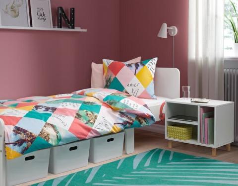 SMUSSLA nachtkastje/bijzettafeltje, wit Dit kleine en betaalbare meubelstuk is een trouw maatje naast het bed. Het kan van vorm veranderen en groeit met je kind mee: van opbergruimte tot nachtkastje, tot een stellingkast naast het bureau. Het nachtkastje/bedtafeltje is makkelijk te monteren.