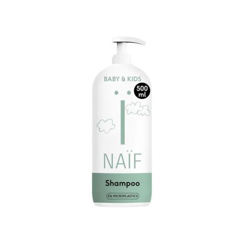 Zachte Naïf Baby & Kids Nourishing Shampoo 500 ml die het haar en de gevoelige hoofdhuid mild reinigt zonder te prikken. Met natuurlijke ingrediënten voor zacht, goed doorkambaar haar, geschikt voor dagelijks gebruik.