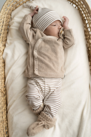 en toute liberté. Il est possible d'ajouter toutes vos envies cadeaux et de recevoir les dons directement sur votre compte. Avec les dons reçus, vous êtes alors libre d'aller acheter vos produits (comme ce 'Newborn set Streepjes Taupe (rib) Broek + Muts