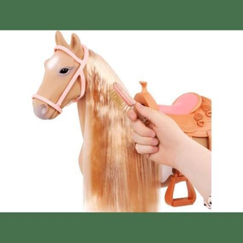 Het Palomino Hair Play Horse is een 50 cm speelpaard voor 45–46 cm grote poppen, ideaal om fantasierijke stampede-stijlen en creatieve looks te maken. Het paard heeft een prachtig bruin-wit lichaam en lang, zijdezacht blond haar dat gestyled kan worden. De set bevat een zadel, hoofdstel en teugels, een haarborstel, haarspelden, haardecoratie-verlenging en een stylingkaart om eindeloos te mixen en matchen. Compatibel met de meeste poppen en accessoires. Let op: poppen worden apart verkocht. Dit speelpaard stimuleert fantasierijk spel en het creëren van unieke verhalen. • Speelpaard van 50 cm voor 45–46 cm poppen • Bruin-wit lichaam met lang, zijdezacht blond haar • Inclusief zadel, hoofdstel, teugels en haaraccessoires • Stylingkaart voor creatieve kapsels en looks • Compatibel met de meeste poppen en accessoires • Stimuleert fantasierijk spel en storytelling • Voor kinderen vanaf 3 jaar (kleine onderdelen)