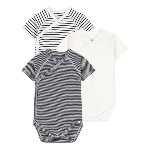 Shop now on Smallable: Petit Bateau - Striped Newborn Bodysuits - Set of 3 - Navy blue. Eco-friendly. Plus discover our selection of bodysuits jumpsuits.