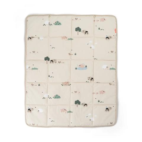 This thick quilted play mat provides a soft and comfy space for your little one to enjoy fun on the floor. With two elastic loops, you can easily attach your baby’s favourite toys for extra entertainment. The mat is easy to fold, making it perfect for visits or weekend trips. Reversible with a cute print on one side an