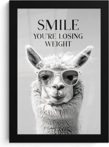 Poster in lijst - Fotolijst 20x30 cm - Posters - Quotes - Lama - Smile - Spreuken - Grijs - Posterlijst zwart - Wanddecoratie badkamer - Muurdecoratie...