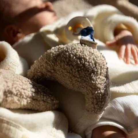 en toute liberté. Il est possible d'ajouter toutes vos envies cadeaux et de recevoir les dons directement sur votre compte. Avec les dons reçus, vous êtes alors libre d'aller acheter vos produits (comme ce 'SPEENDOEKJE LITTLE CROISSANT | ATELIER POMME