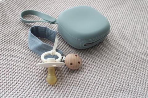 Deze moderne siliconen speenhouder is de ideale oplossing om spenen schoon, veilig en binnen handbereik te houden. Dankzij het compacte formaat en het flexibele lusje bevestig je de speenhouder eenvoudig aan een kinderwagen, luiertas of handtas. Zo neem je de speen overal hygiënisch mee naartoe.