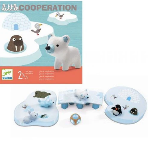Met dit spel leren kinderen samenwerken, ze helpen de pooldieren over de brug om terug bij de iglo te geraken. Gooi met de dobbelsteen en kijk welke zet je mag doen.