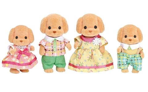 Familie Poedel van Sylvanian Families is een schattige poppenfamilie voor kinderen. De set bevat Vader, Moeder, Jongen en Meisje Poedel. De aankleedpoppen