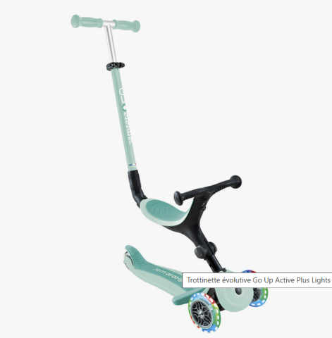 Découvrez Go Up Active Plus Lights, une trottinette évolutive signée Globber ! Évolutive, car sa première utilisation se fera en tant que tricycle à partir de 15 mois, avant de devenir une trottinette pour enfant jusqu'à 6 ans.