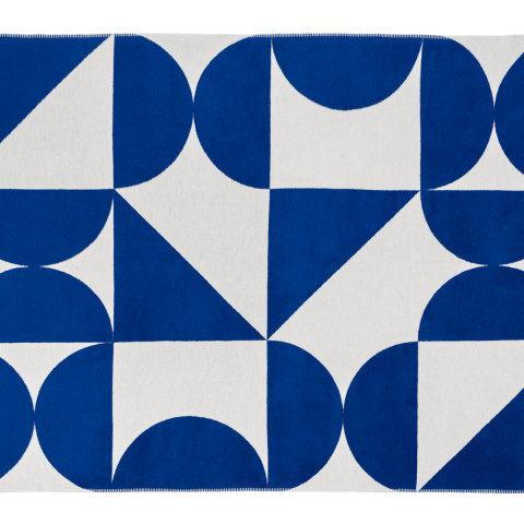 Meet Tul, a cotton blanket to use as a decorative bed or sofa throw in geometric blue & beige print and warm fabric. Dimensions 200 x 150 cm.
