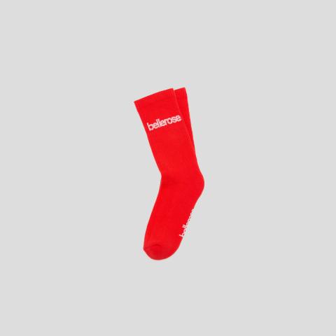 Geribbelde crew sokken in rood met een wit Bellerose logo op de enkel en zool, met verstevigde tenen en hielen voor extra comfort. Shop nu de laatste trends voor vrouwen 39-42