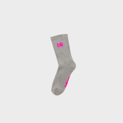 Geribde crew sokken in middengrijs met een roze logo op de enkel en zool, met verstevigde tenen en hielen. Shop nu de laatste trends voor mannen.