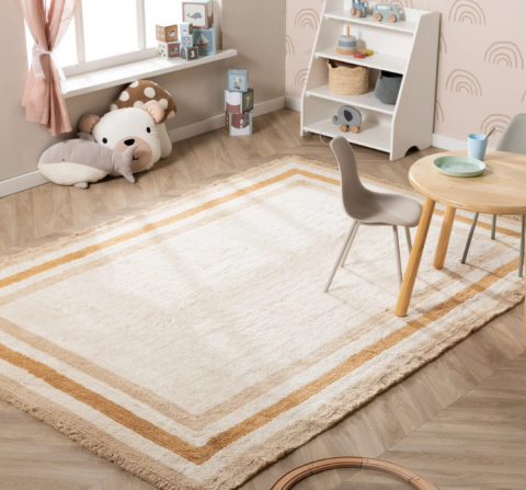 Zacht, stijlvol en helemaal kidsproof – het Wasbaar kindervloerkleed - Milo Beige is de perfecte toevoeging aan elke kinderkamer. Dankzij de pluizige ondergrond, fluffy textuur en speelse franjes voelt het heerlijk comfortabel aan onder kleine voetjes, ideaal om op te spelen, lezen of gewoon lekker te liggen.