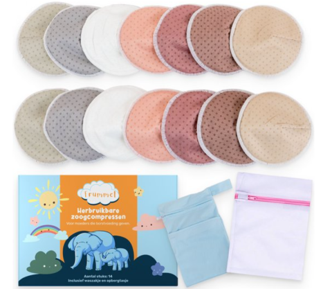 De Frummel Wasbare Zoogcompressen combineren comfort, functionaliteit en duurzaamheid in één oplossing. Speciaal ontworpen voor moeders die borstvoeding geven, bieden deze compressen maximale bescherming tegen lekken en comfort gedurende de dag en nacht. Met een verpakking van 14 stuks, inclusief een transporttasje en waszakje, is dit de perfecte keuze voor elke moeder.