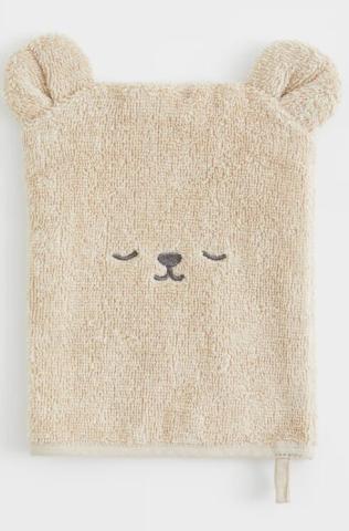 Een handige washand van zachte badstof met oortjes vanboven en borduursel vooraan. Met ophanglusje op de hoek onderaan.