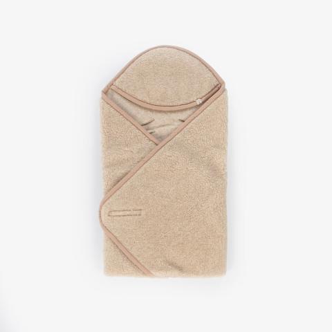 Een zachte wollen wikkeldeken met openingen voor de maxi-cosi. Heerlijk voor de gevoelige huid van je baby, zorgt het voor een gevoel van geborgenheid.