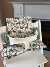 On sort du thème de la forêt avec ce joli coussin réversible "jungle" pour la chaise Tripp Trapp.