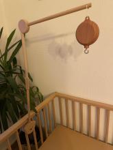 Laure, de nature créative à ses heures perdues, crée un joli mobile pour la chambre de notre petite biche. Il faudra donc un support en bois pour l'accrocher au lit ou au parc.