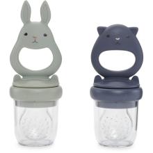 Lot de 2 tétines grignoteuses lapin en silicone. Le principe est simple : vous placez un morceau de fruits ou de légumes ou encore de la purée dans la tétine! Une manière simple d'introduire la diversification. Petite astuce : lors des poussées dentaires, il suffit de mettre du lait maternel ou en poudre congelé afin de soulager les gencives.