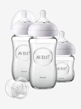 Kit nouveau-né : 3 biberons en verre sucette Philips AVENT Natural tra
