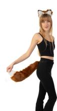 KIMU Haarband Furry Oren & Staart Set Bruin Wit Punt