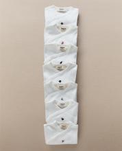 Pack van zeven katoenen rompers. Overslag met drukknoopsluiting voor makkelijke verwisseling. Met detail van geborduurde dieren.