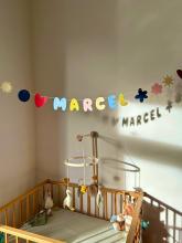 Handgemaakte papieren naamslingerPerfect voor geboortes, kinderkamers, verjaardagen, babyshowers of gewoon ter decoratie in jouw huis. Specificaties:* Met de hand gemaakt* 10 speelse vormen* Maximaal 8 letters* Kwalitatief gekleurd papier* 3,5 meter katoenen draadJe ontvangt de slinger geregen, je hoeft alleen nog maar