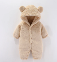 Mini Fashion - Met Capuchon - Fleece Romper Beige - maat 73