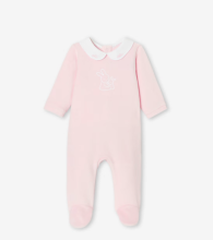 Cette saison, l’incontournable dors-bien bébé fille opte pour un look chic minimaliste. En velours doux teinté d'un rose apaisant, un col brodé du message