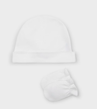 Cet ensemble composé d'un bonnet et de moufles assorties offrira confort et protection à bébé dès les premiers jours.