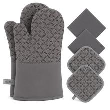 Montzys® Siliconen Ovenwanten Set - Set van 6 - BBQ Ovenhandschoenen - Hittebestendig tot 250 °C - 2 Stuks Inclusief Pannenlappen & Microvezeldoekjes