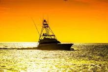 Cruise bij zonsondergang op een catamaran