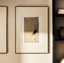 Schilderij op canvas in zwart kader. In zilver en goud. B 90 x H 120 cm.