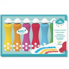 Set van 6 schuimmarkers van Djeco om heerlijk mee te stempelen. In deze set zitten 6 kleurrijke stiften met een zachte stempelpunt die je kan afsluiten met een dopje . De inkt is afwasbaar, handig met kleine picasso's in huis. De ergonomische vorm zorgt er voor dat kleintjes ze makkelijk kunnen vastnemen. Leeftijd: van