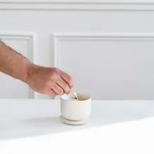 Geurkaars in kunstkeramiek. Na het opbranden: plant de zaadjes voor natuurlijke kustcharme. Een verjongende geurbeleving en duurzaam woonaccessoire in één.