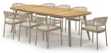 Mosa tuinset in beige aluminium en teak met 8 stapelbare Zamora tuinstoelen