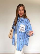 Dit blauwe hemd met strepen en speelse koffietas geeft je outfit een frisse en effortless uitstraling. Draag hem open over een lace top of gesloten voor een meer klassieke look. De losse fit maakt hem ideaal voor een casual chic styling. Een musthave dames blouse voor een trendy, comfortabele everyday look.