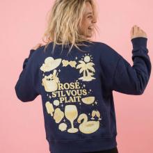 A NEW summer rosé design for 2026 Model info: 1m63/52kg and wears size XS. The sweater has a loose fit. Order your regular size. If you don’t like it too oversized, you can even choose one size down. Color: Navyblue Material info: 65% Cotton and 35% Polyester. Brushed fleece on the inside, very warm and soft! SIZING
