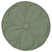 GULDVÄVARE gewatteerde deken, groen/beige gestreept, 105 cm Ronde gewatteerde deken met steken die een bloem vormen in de stof die is geweven van biologische katoen. Gevuld met zacht polyester en hierdoor net zo comfortabel om op te liggen of als ondergrond in de wieg.