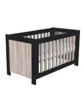 Babykamer Brentwood van het merk TWF heeft een strakke, moderne look en is uitgevoerd in lichtbruin houtdecor in combinatie met zwart