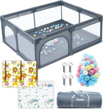 Teddle Grondbox – Inclusief Dubbelzijdige Speelmat – Baby Speelbox met 50x Speelballen - Kinderbox - Playpen - 180x150cm - Grijs. Laat jouw kleintje...