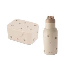 Lunch box set in de print Cherry Blush van Konges Sløjd. Deze praktische set voor leuke en handige maaltijden en drankjes onderweg, bevat een lunchbox en een thermo drinkfles.