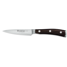 Klein, veelzijdig mesje met slank lemmet en gladde rand: dit groentemes is gemaakt voor het snijden van uien en kruiden en is ook handig voor het hakken, schoonmaken en decoreren van fruit en groenten. Met het scherpe, puntige lemmet werkt dit groentemes ook goed als lardeermes.