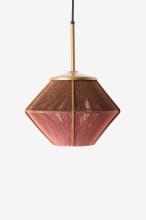 Hanglamp Aural shades mini van Sissy-Boy. Bij het ontwerpen van de lampen was het doel iets te creëren wat je nergens anders ziet, iets heel speciaals. Tegelijkertijd zonder toeters en bellen maar met een tijdloze klasse. De subtiele vormen, de bijzondere combinatie van materialen en een zacht kleuren-spel hebben dit bereikt. Op deze lamp raak je echt niet uitgekeken. De lamp heeft een afmeting van 28x38 cm. De lamp is gemaakt van ijzer en de kap bestaat uit bruin-roze polyesterdraad.