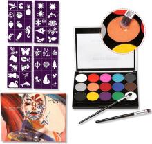 Veilig Schmink Kinderen -15 kleuren & 2 penselen & 4 sjablonen op waterbasis-... | bol