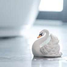 Een mooie elegante zwaan die gebruik kan worden als badspeeltje, bijtspeelgoed of voor fantasiespel. Het speeltje is gemaakt van natuurlijk rubber en heeft geen openingen waar bacteriën kunnen ophopen. De details zijn gekleurd met natuurlijk pigment. Volledig veilig voor de allerkleinsten om op te bijten. De zwaan voel