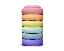 Een set van 12 houten Nins® poppetjes, elk met 6 ringen en 3 schijfjes in de kleuren van de regenboog van het Spaanse merk Grapat. De 'Nins® Carla' zijn voor hele kleine kinderen prachtige speelgoedvrienden om de kleuren te mixen en weer bij elkaar te