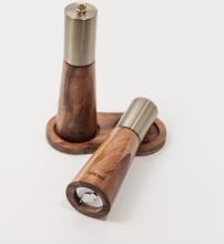 MOSI Home® Zout- en Pepermolen set | Acacia Hout | Molenset met houder | 18 cm | Rond | Cadeau tip / BBQ / Keukenaccessoires / Zoutmolen en Pepermolen