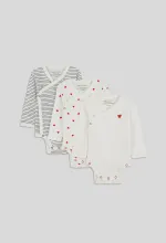 Lot de 3 bodies manches longues imprimé en coton BIO GOTS ECRU pour bébé BOUT'CHOU