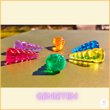 leuke kleurrijke gedetailleerde schelpen (thema kamer) om te tellen, sorteren, patronen te leggen, te spelen,...Ook oudere kinderen vinden het fijn deze schelpen als leermiddel te gebruiken. Bv tijdens een les over spiegelen,...Multifunctioneel inzetbaar! Tip: leuk effect bij gebruik op een lichtplaat